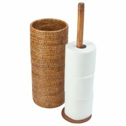 Outlet 👏 KOUBOO La Jolla Handwoven Rattan Toilet Roll Stand, 3 Rolls, Honey-Brown 💯