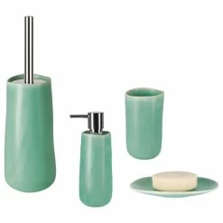 New 😉 Toilet Brush And Holder Spirella Sina Green Stoneware 🌟