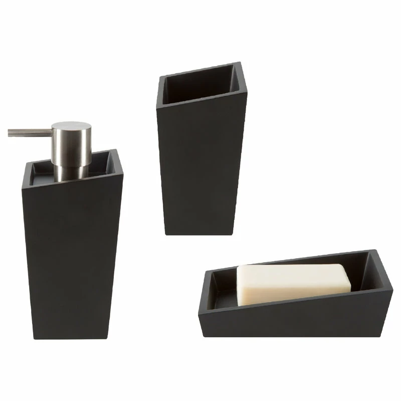 Color coordinated bathroom countertop collection set Spirella Yoshi Matte Black Polyresin Keep your personal bathroom looking modern & contemporary with this unique set from the Spirella collection. This free stand countertop set is made in the highest quality and perfect for modern & contemporary-designed bathrooms. Designed in Europe