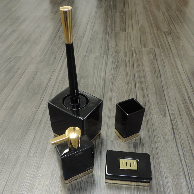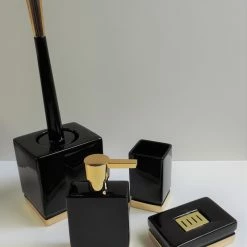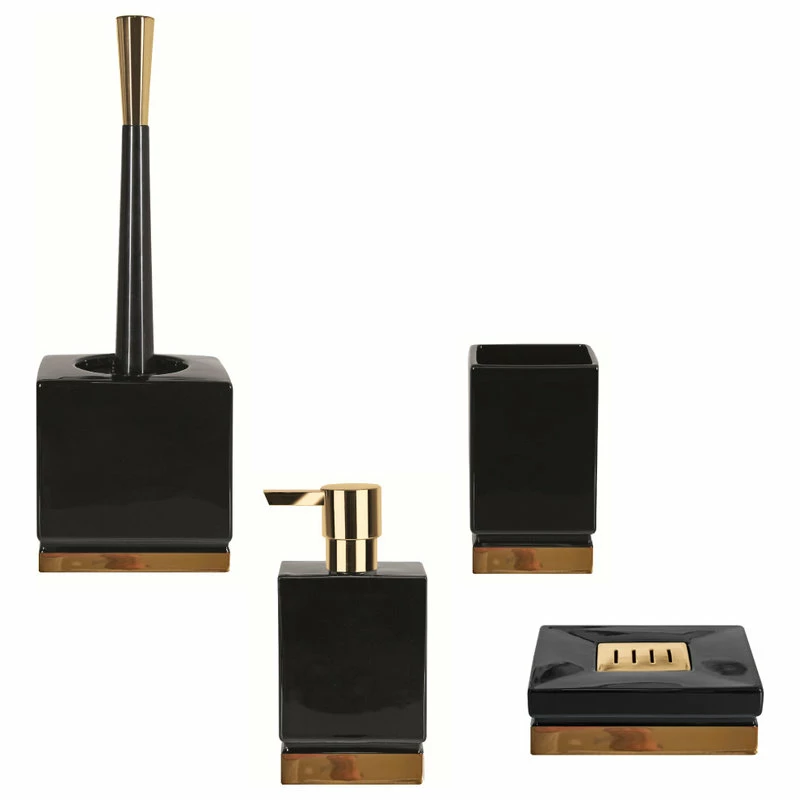 Color coordinated bathroom collection set Spirella Roma Black And Gold Ceramics Keep your personal bathroom looking modern & contemporary with this unique set from the Spirella collection. This free stand bathroom set is made in the highest quality and perfect for modern & contemporary-designed bathrooms. Designed in Europe