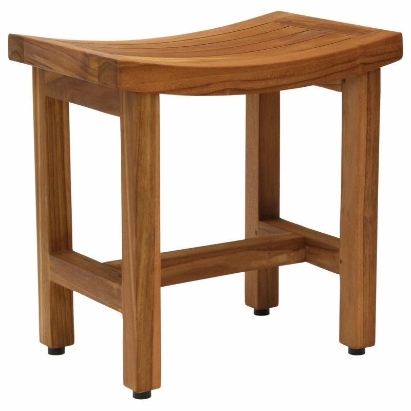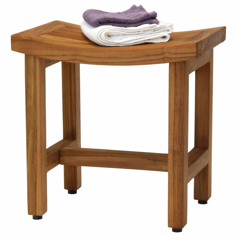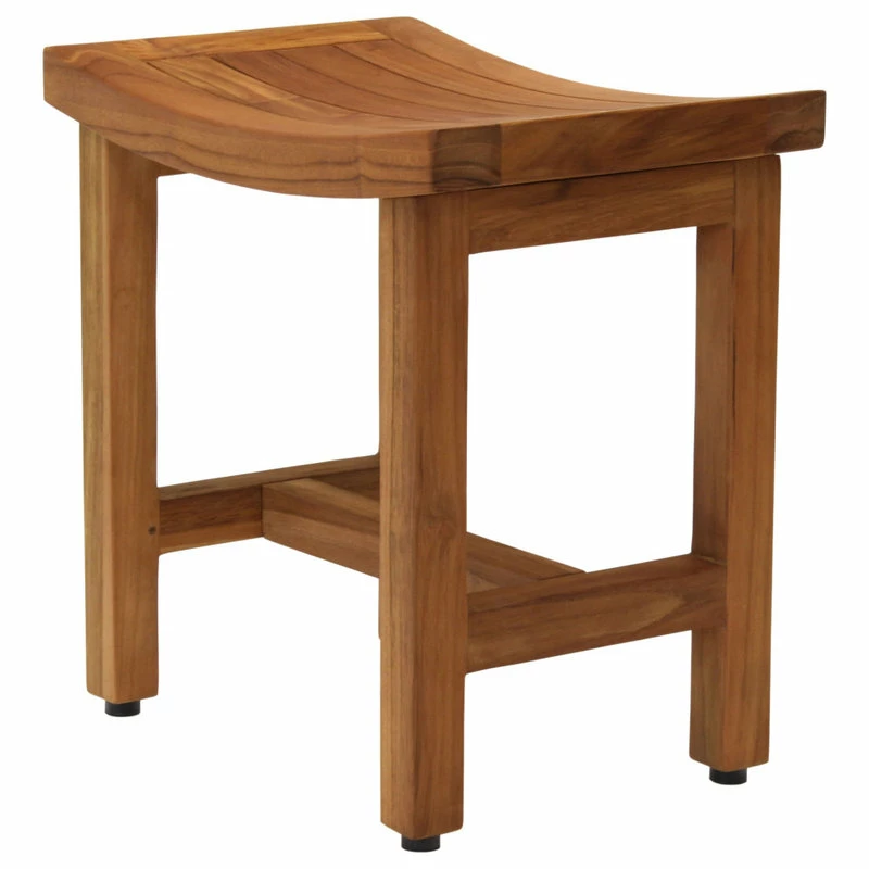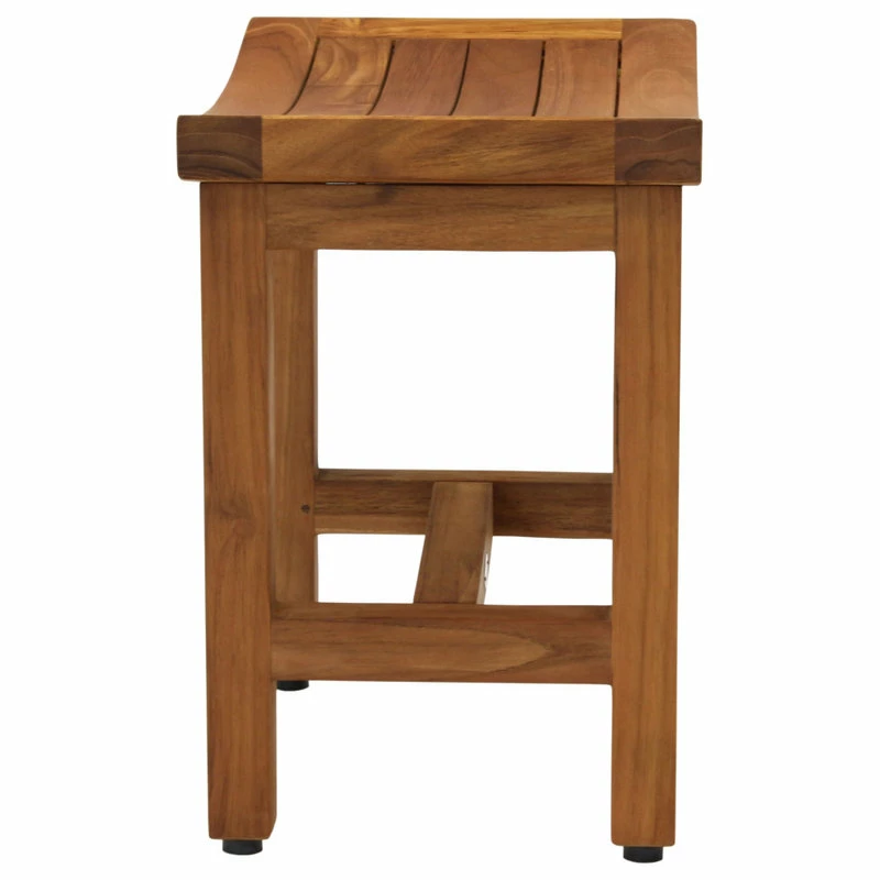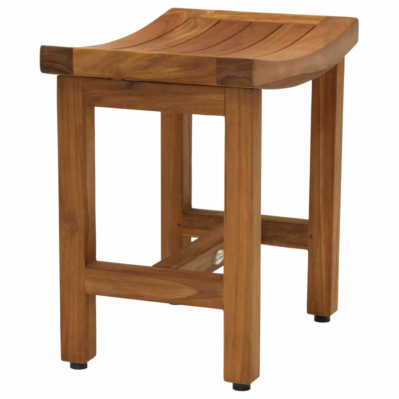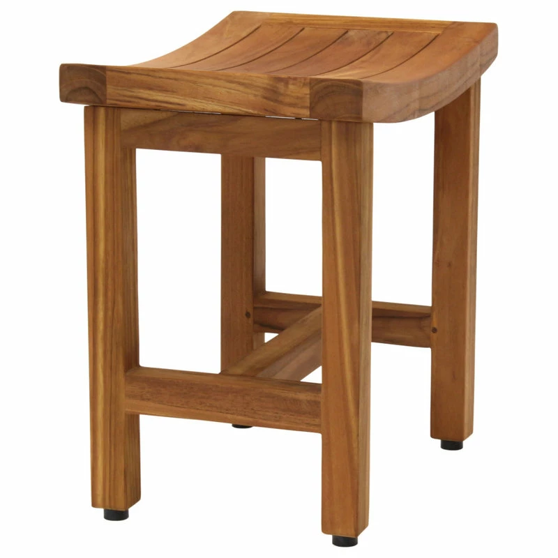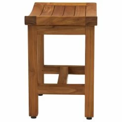 AquaTeak is proud to present this beautiful 18″ teak shower bench. This is the perfect accessory for any spa or personal shower. Don’t settle for a plastic bench or a wood bench that will eventually succumb to moisture. Teak is so strong and waterproof, it used to be the material of choice for ships and still is popular for decks and beyond. Bring this gorgeous wood into your home or business with this Sumba Lotus teak shower bench. Its rich color and sturdy construction will take any space to the next level. Invest today and enjoy our 30-day satisfaction guarantee as well as our five-year limited warranty.