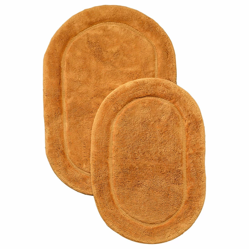 Keep your feet warm and dry after a bath or shower with this Non-Slip Oval Bath Rug Set. Each bundle includes 1 large bath rug and 1 small bath rug that you can keep together in front of a bathtub, shower, or sink, or scatter among a master or guest bathroom, mudroom, or laundry room for a complete and colorful look. These rugs are well-made from exceptional Cotton fibers with a spray latex backing that prevents slipping on damp floors and are ultra-plush, highly absorbent, and help you dry off quickly. Available in multiple solid colors with a sculpted border trim pattern for added texture, updating the look of your space is effortless.