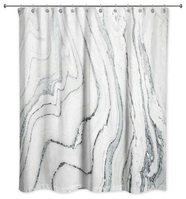Incorporate modern style into your bathroom with the Blue Marble Shower Curtain. Featuring a blue and white marble design, this fabric shower curtain includes 12 eyelets for hanging and is made of softened polyester fabric. This unique shower curtain is designed and assembled in the U.S.A.