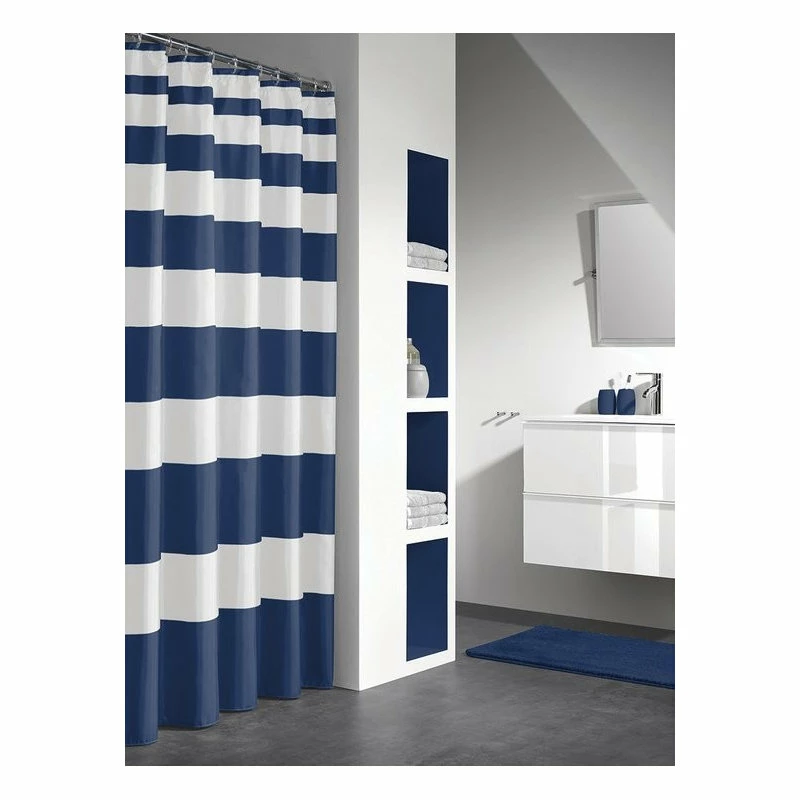 - Extra long luxury shower curtain Nautica Stripes Blue And White