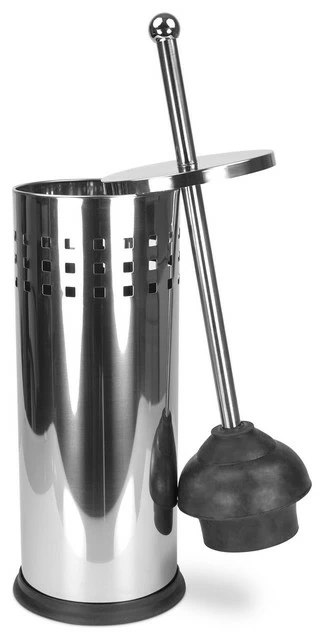 Keep your toilet clean and clog free with this toilet plunger. Made from high quality stainless steel. Rust resistant. Includes a holder for easy storage and to keep the plunger out of sight. Easy to use steel handle for control when using.