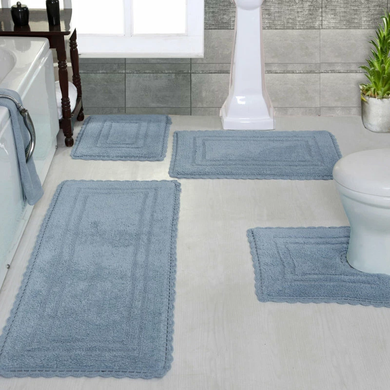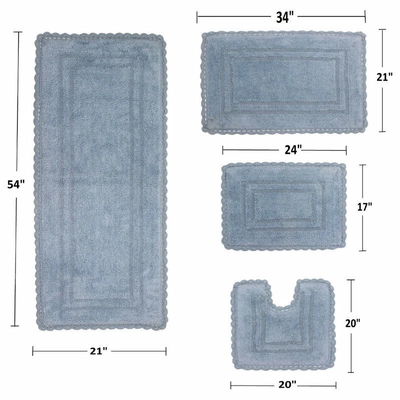 Home Weavers Casual Elegence Bathmat Collection – Absorbent Cotton Soft Reversible 4 Piece Bath Rug Set, Machine Washable, 17″x24″, 21″x34″, 20″x20″, 21″x54″, Blue