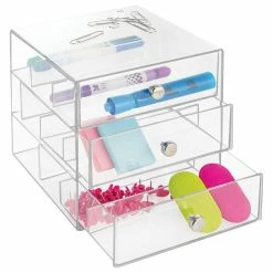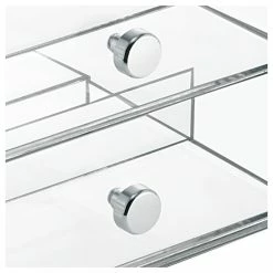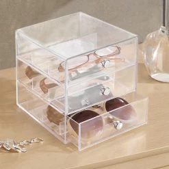 iDesign’s Clarity 3-Drawer Stackable Glasses Organizer is the perfect addition to your vanity. This organizer is perfect for storing your sunglasses, eyeglasses, or reading glasses. With 3 transparent drawers, you won’t have to spend time digging to find what you’re look for – you can easily see what you need, grab it, and go! Each drawer has 3 compartments, allowing you to store up to 9 pairs of glasses. The clear plastic with chrome handles is cohesive with any decor. Measuring 6.5″ x 6.5″ x 6.5″, iDesign’s Clarity 3-Drawer Stackable Glasses Organizer fits easily on your desk, dresser, or nightstand.