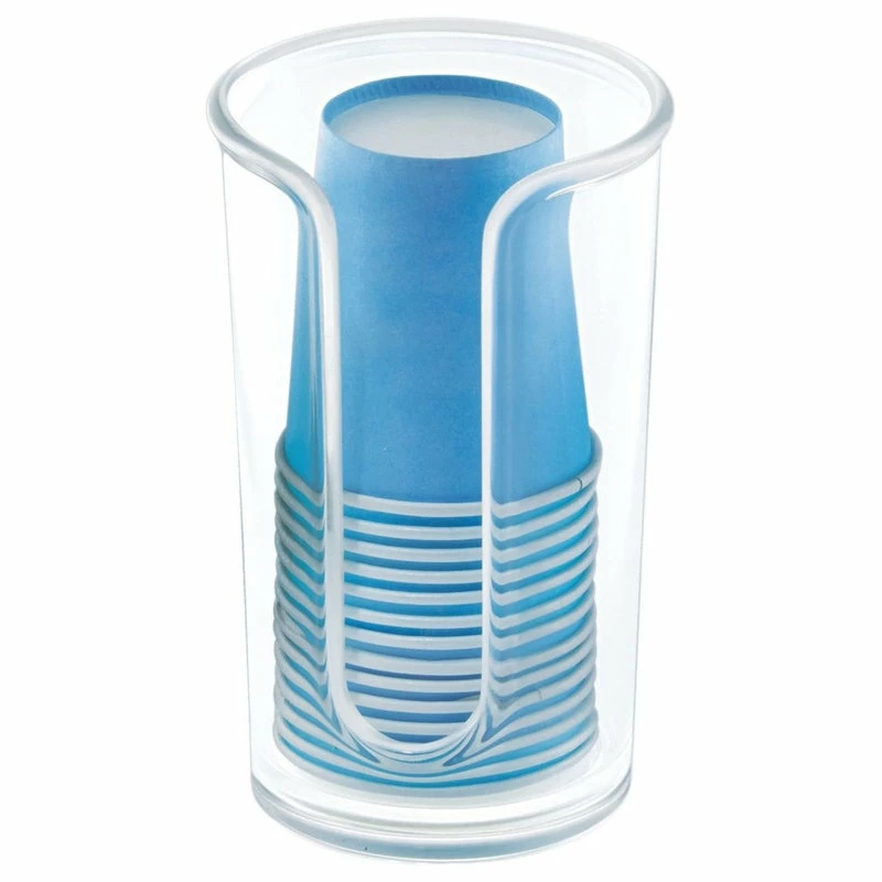 iDesign helps make your guests feel right at home with the Clarity Disposable Cup Dispenser. Perfect for grabbing a drink of water, a sip of mouthwash, or a quick rinse. Made of durable plastic, this dispenser includes 14 blue disposable cups so you and your guests waste no time while the clear plastic makes it simple to keep track of how many cups you have left before needing to restock. Measuring 3″ x 3″ x 5″, your iDesign Clarity Disposable Cup Dispenser is attractive with any decor, and its functionality is a welcome gesture.