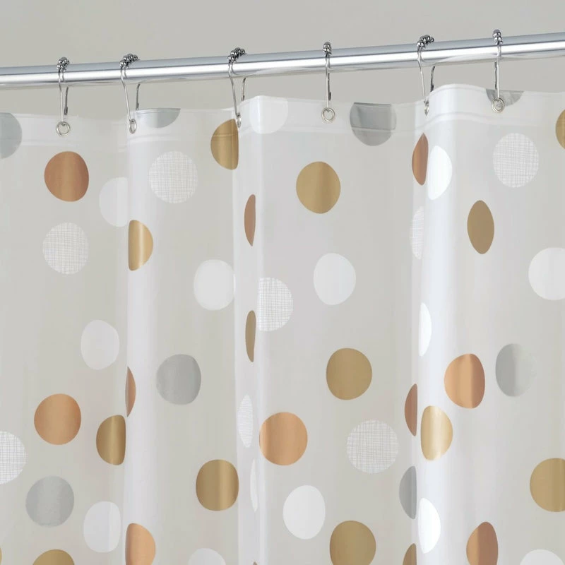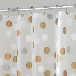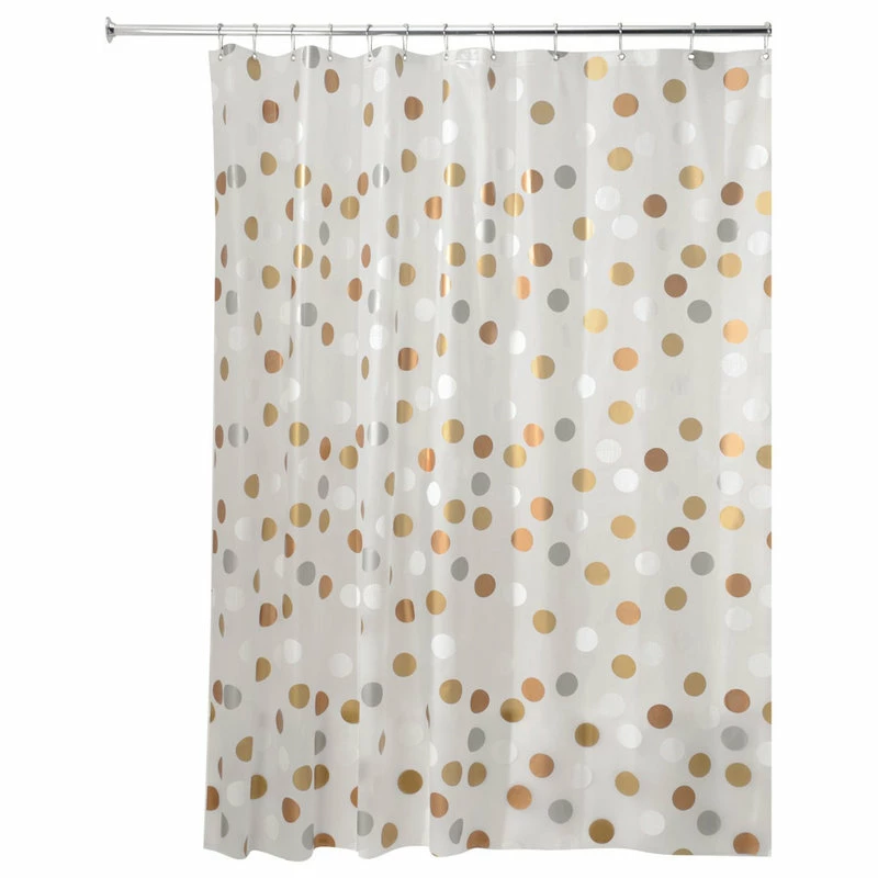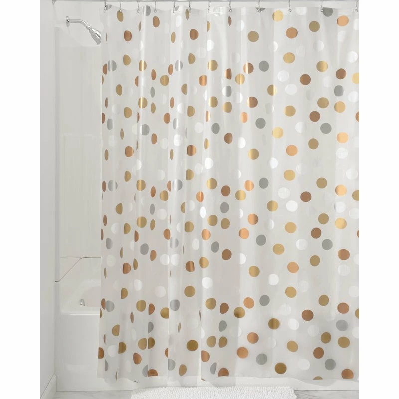 The iDesign Gilly Dot Shower Curtain is sure add a touch of style to any bathroom. This PVC-free curtain is mold and mildew resistant and has rust-resistant metal grommets for easy hanging that will last shower after shower. When the time comes to freshen up, simply wipe down the plastic shower curtain for a quick clean. Measuring 72″ x 72″, this curtain will be the perfect addition to your bathroom.