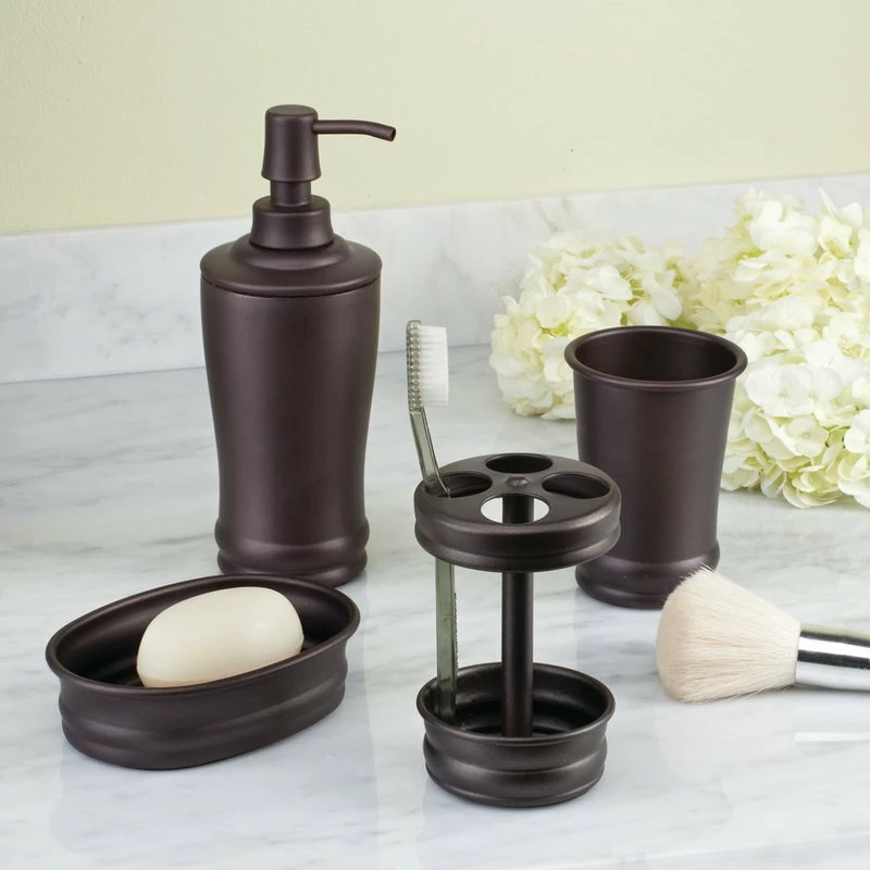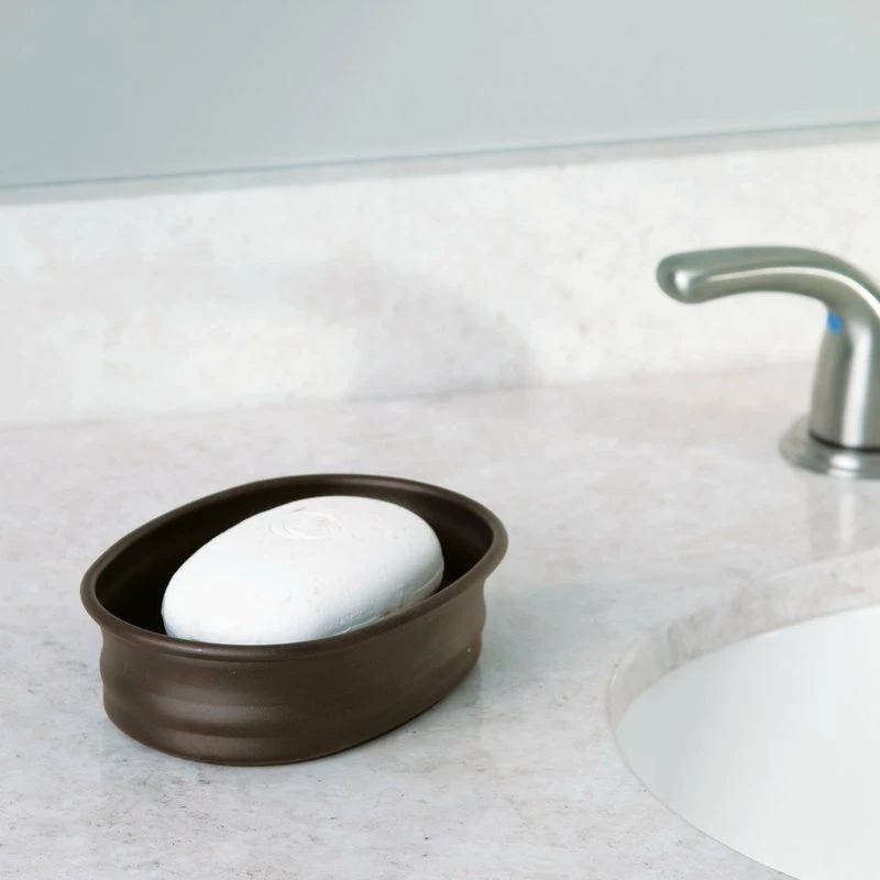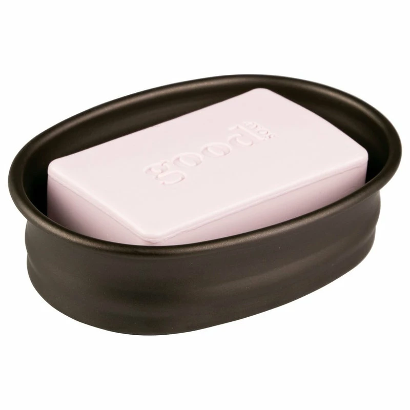 Add a classic look to your bathroom with the iDesign Olivia Soap Dish. This dish holds a bar of soap on a ridged interior to keep your countertops and soap clean. It is equipped with a non-slip base to keep it securely in place. With a plastic interior, the soap dish is easy to clean and will last for years of quality use. The steel design adds a rust-resistant luxurious touch to compliment any decor. The iDesign Olivia Soap Dish measures 5.5″ x 3.75″ x 1.5″.