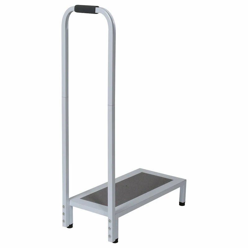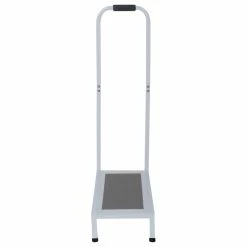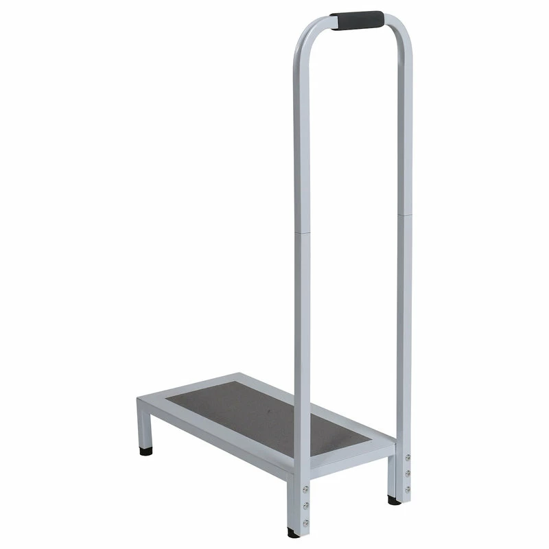 - Get in and out of the tub or shower safely. According to the CDC, over 200,000 people injure themselves each year in the bathroom-most around the tub. This Bath/Shower Step can help you avoid being a statistic by helping you get in and out safely. The 34″ tall handle and textured platform with non-slip rubber grip are made of sturdy, high-quality steel. Platform is 435″ high and holds up to 500 lbs. Rubber feet help to keep this bath step firmly in place.