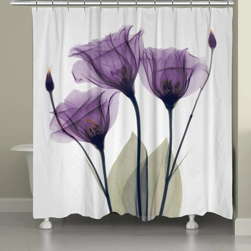 The Gentian Hope Flower Shower Curtain can add a final, artistic touch to your bathroom. Artist Albert Koetsier created this calming floral image using an X-ray machine and a cluster of flowers. The image has been digitally printed on the shower curtain to create crisp, vibrant colors. Buttonholes line the top of the curtain where you can add hooks.