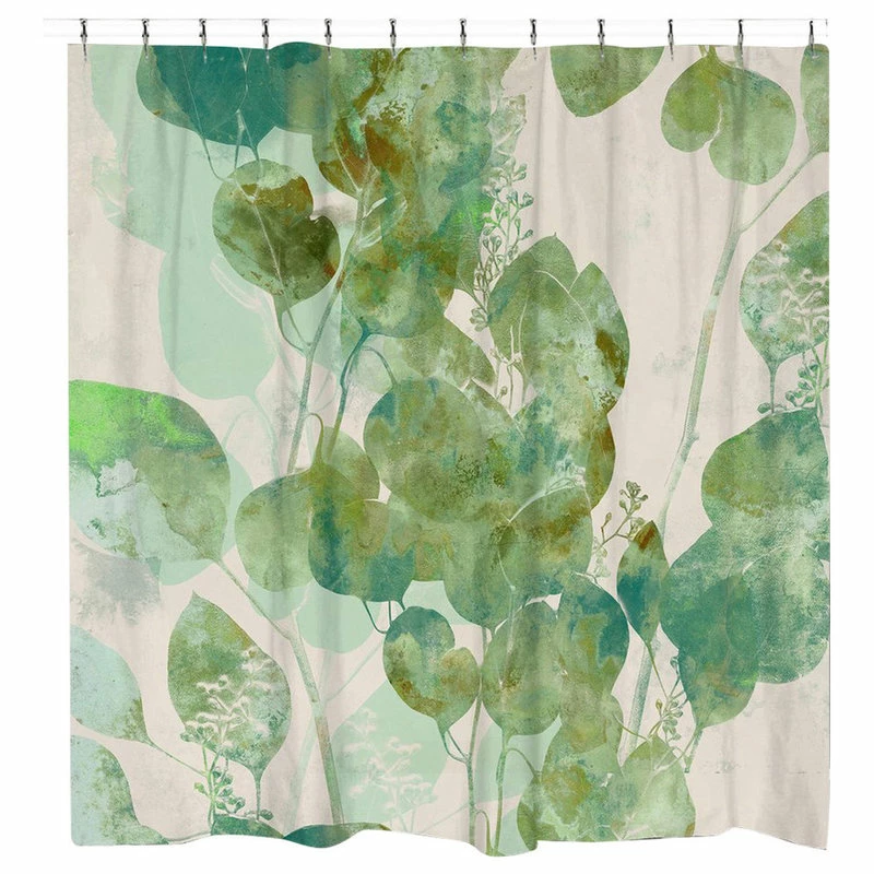 Laural Home’s “Green Watercolor Eucalyptus Leaves” features a perfectly soothing array of eucalyptus leaves, making it the perfect accessory to create a spa-like sanctuary in your very own bathroom.