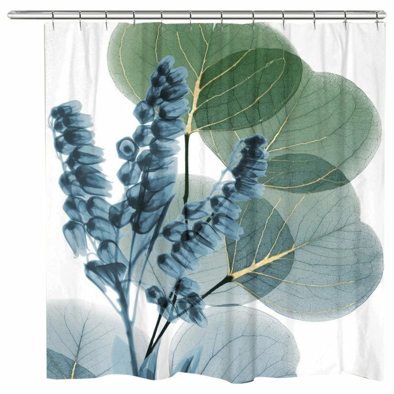 Refresh the look of your bathroom with the calming, beautiful floral image of the Lily and Eucalyptus Leaf X-Ray Shower Curtain.. This shower is created with a special technique using an x-ray machine and a cluster of flowers.
