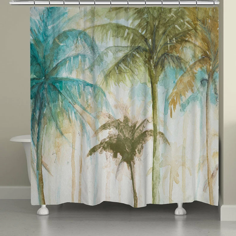 Relax in a tropical paradise, courtesy of the “Watercolor Palms Shower Curtain” from Laural Home. Featuring a serene forest of palm trees, this watercolor design brings the peace of a tropical escape into your bathroom. All our products are digitally printed to create crisp, vibrant colors and images.