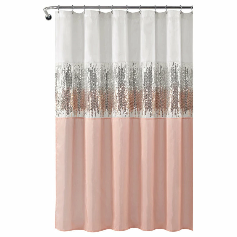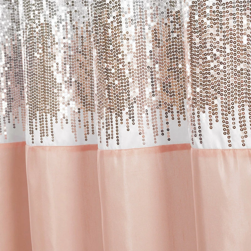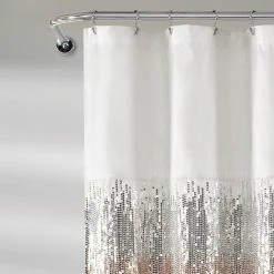 Modernize the look of your bathroom with this stunning shower curtain which features two tone sequins and luxurious faux silk fabric. This shower curtain is sure to add the glamorous look you are going for in your chic master bathroom or guest bathroom.1 Shower Curtain: 72″H x 72″W