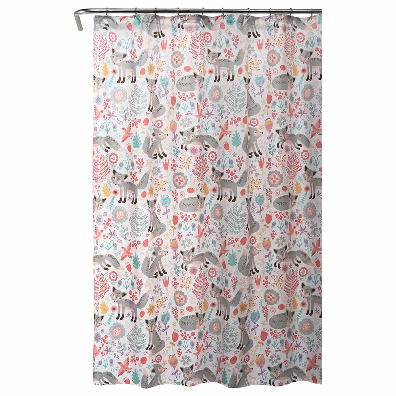 Children of all ages will love this fun and adorable shower curtain design featuring foxes playfully frolicking in a field of various trees, flowers and even birds! printed on microfiber. Part of the Pixie fox collection.