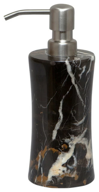 Our Vinca Black and Gold Marble Soap Dispenser is a sophisticated and chic accessory for your bathroom or kitchen countertop. Match the existing hardware in your space by selecting this tasteful piece with either a brushed silver or gold pump dispenser.