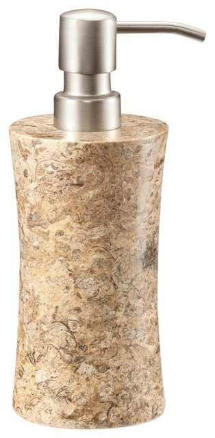 Our Vinca Fossil Stone Soap Dispenser is a sophisticated and chic accessory for your bathroom or kitchen countertop. Match the existing hardware in your space by selecting this tasteful piece with either a brushed silver or gold pump dispenser.