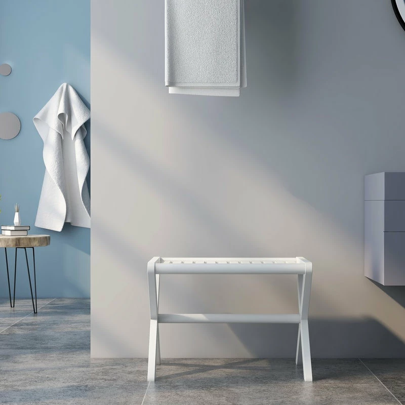 The versatile, beautiful Solid Birch Wood Large Stool is the perfect place to towel off after a long, hot shower. The 100% solid birch wood construction means that this stool has been built to last. With high quality Sherwin-Williams water resistant finishes, you can rest assured that this stool is safe to use in a bathroom or sauna and will not degrade. Offered in a variety of colors to suit your taste, you can add beauty and convenience to your daily life. In the bedroom, this stool looks great at the foot of the bed, and is sturdy enough for holding luggage. It can even be used as a side table; its vertical slatted pattern offers the perfect place to set a hot or cold drink without worry. Or simply use this stool as a place to rest your feet after a long day.