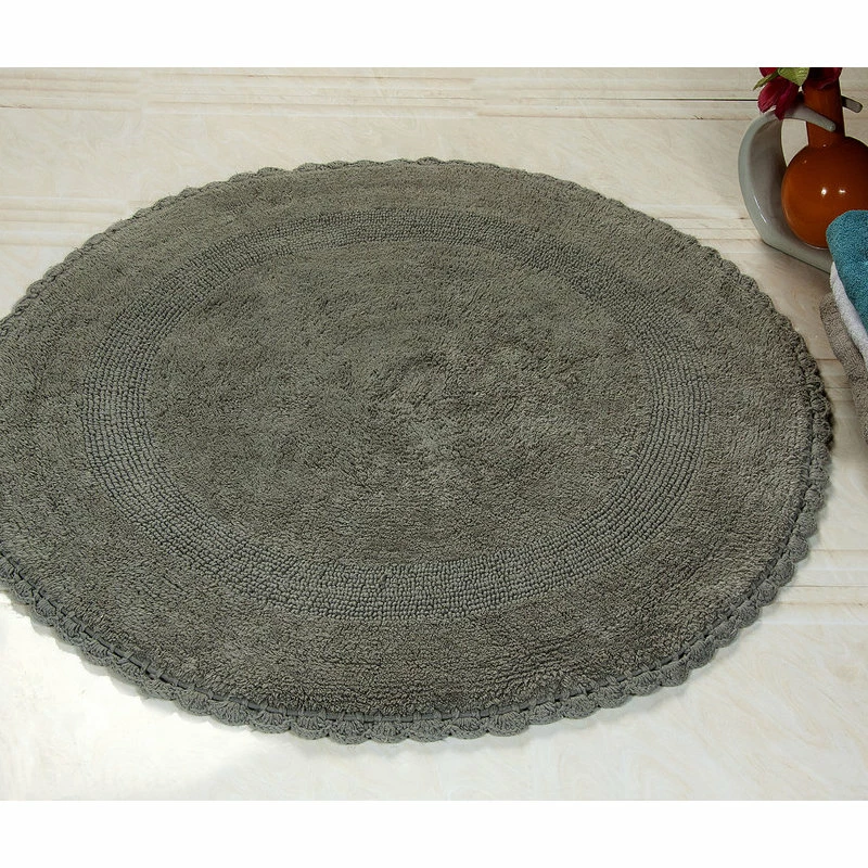 Size – 36 Inch Round. 100% soft Cotton, Reversible Textured Pattern. 36 Inch Diameter. Hand Knitted Crochet Lace Border. Machine washable and dry able. Superior high quality hand tufted durable construction. 200 GSF ‘grams per square feet’ thickness/weight. Decorate your bathroom with this Saffron Fabs Crochet Lace 36 Inches Round Bath Rug, this rug is available in many colors such as arctic blue, beige, chocolate, grey, ivory, light aqua, sage green, yellow and white. This rug features a Handmade Crochet Lace Border that adds a luxury, relaxed feel to your bathroom. This rug is mode of 100% soft Cotton to provide higher water absorbance, perfect for bathrooms as these soaks water quickly. Thick pile texture enhances its softness. These rugs are dyed with Eco-friendly colors using sustainable AZO free dyes. Saffron Fabs bath rugs can be used as area rug in Kitchen, Bedroom, Hotels, and SPA etc. These rugs are machine washable, cold separately; gentle cycle. Do not pull long yarn ends; trim with scissors. It is recommended to use a rug pad underneath, although heavy rugs do not slip due to their weight. Please do not select thick (heavier GSF) rugs if door opens on top of rug as it may cause issues opening the door. Most cotton rugs are handmade in different lots, therefore there might be some variance in color/ size/ design. Also, rugs are folded after manufacturing to put on cartons for shipping, and many times crease/fold line are very visible, which will settle after some period of usage.