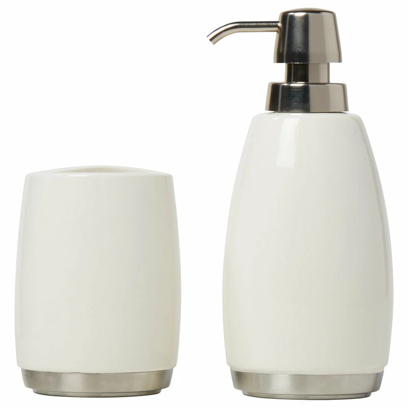Add style to your bathroom decor with the clean, simple lines and classic look of the Ari bathroom collection. Update any bathroom with the brushed nickel accents and gloss glaze finish of the Ari lotion dispenser. Shop the complete Ari collection for a handsome addition to refresh any bathroom.