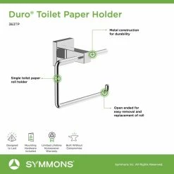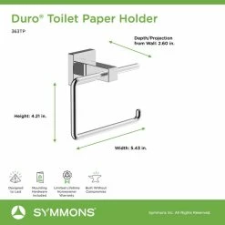 Crafted of quality materials, products in the Symmons Duro suite will not only look minimalistic and modern but operate seamlessly for a lifetime. This Duro Wall Mounted Toilet Paper Holder provides easy access to a single roll of toilet paper. Constructed of brass and stainless steel, this toilet paper holder includes the mounting hardware needed for a simple and sturdy installation. Like all Symmons products, the Duro Toilet Paper Holder is backed by a limited lifetime consumer warranty and 10 year commercial warranty.