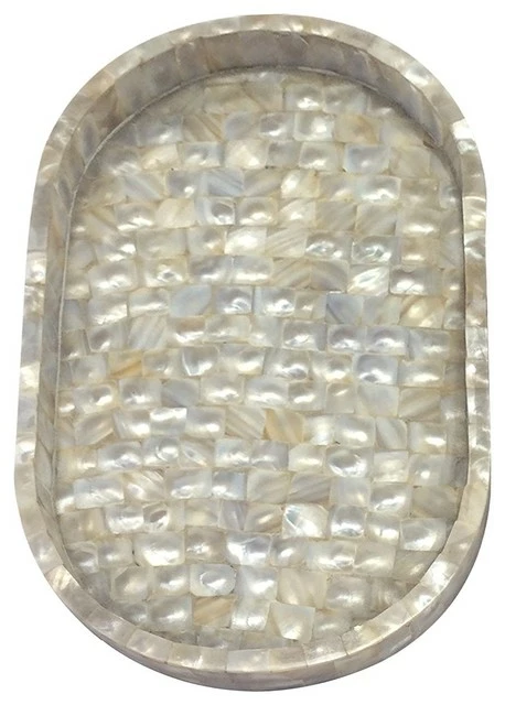 The sleek Mother of Pearl Tray adds a wonderful elegant touch to today’s bathroom decor. It is made of mdf board with white mother of pearl pasted all over. The tray is multi utility, can be used as serving tray, platter, decorative , towel tray etc.
