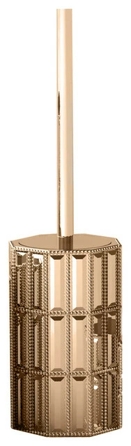 Glitz and glamour abound with this Glitz Bowl Brush. A beautiful, faceted exterior in a lux gold color disguises this brush as stunning decor rather than a cleaning instrument. Pair this piece with others from the Glitz Collection for a truly luxurious bathroom. This piece measures 4.25 inches wide by 4.25 inches deep by 6.54 inches tall.