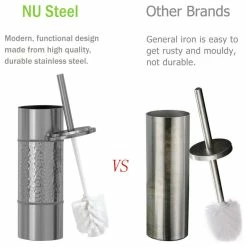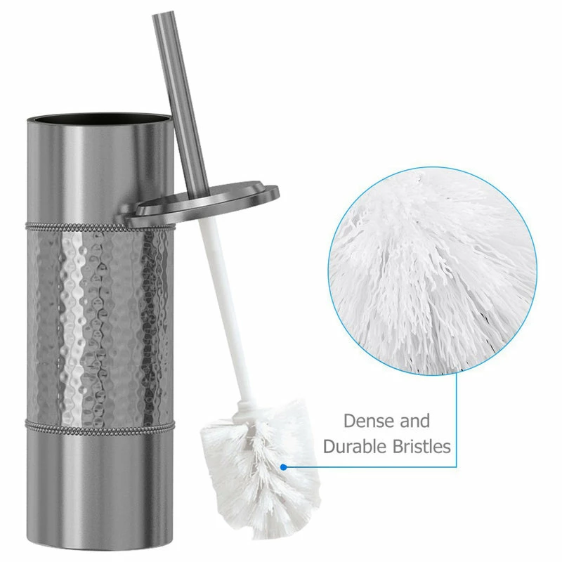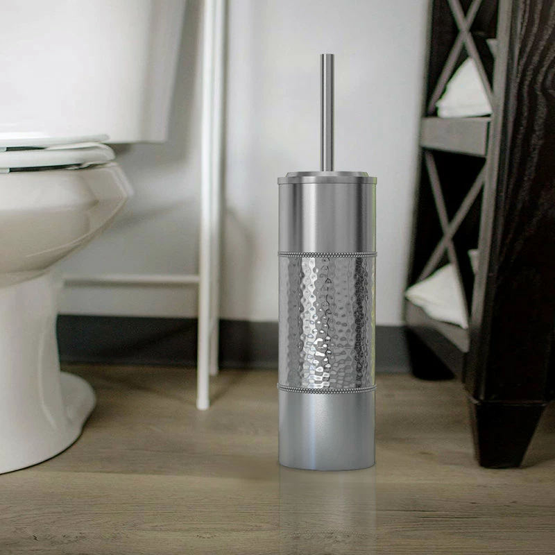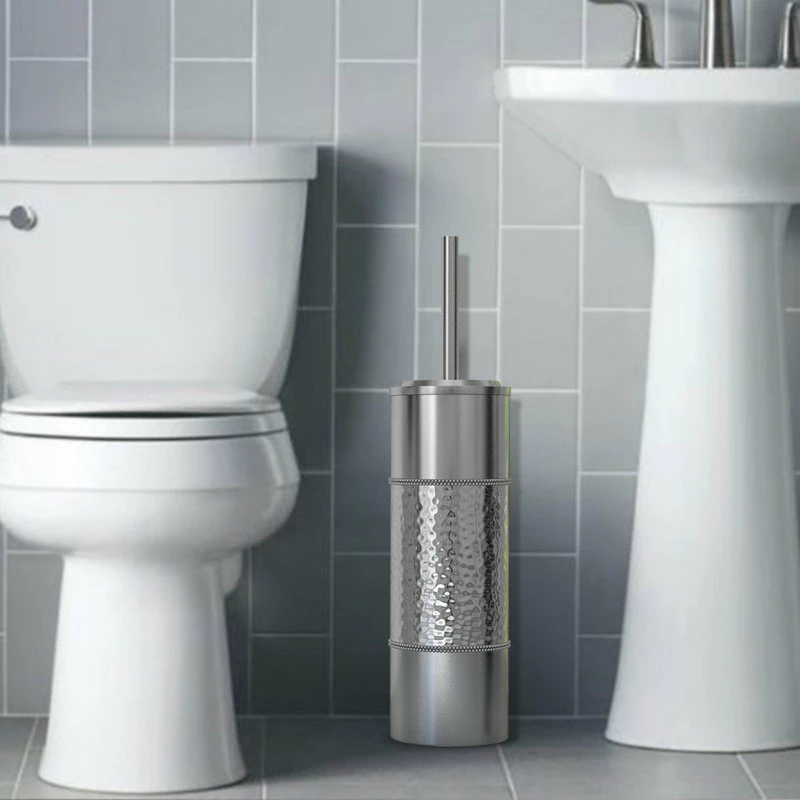 The Stainless steel toilet brush decoratively stores brush in a modern fashion to prevent leaking and keep floors clean and dry, as well as an simple way to clean and store. The compact design fits into even the smallest of bathroom spaces, making it easy to stash out of sight! Its beautiful antique hammered shiny finish.