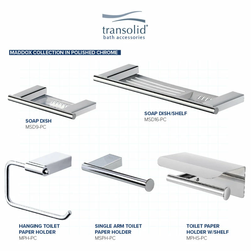 - Coordinates with Transolid Maddox bath accessory collection