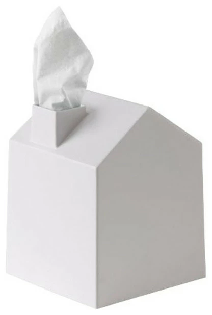 This Umbra Casa tissue box cover cleverly disguises the less-than-attractive paper boxes of most facial tissues. Constructed of easy-to-clean molded plastic, the house-shaped cover dispenses each tissue through its chimney, like a whimsical puff of smoke.