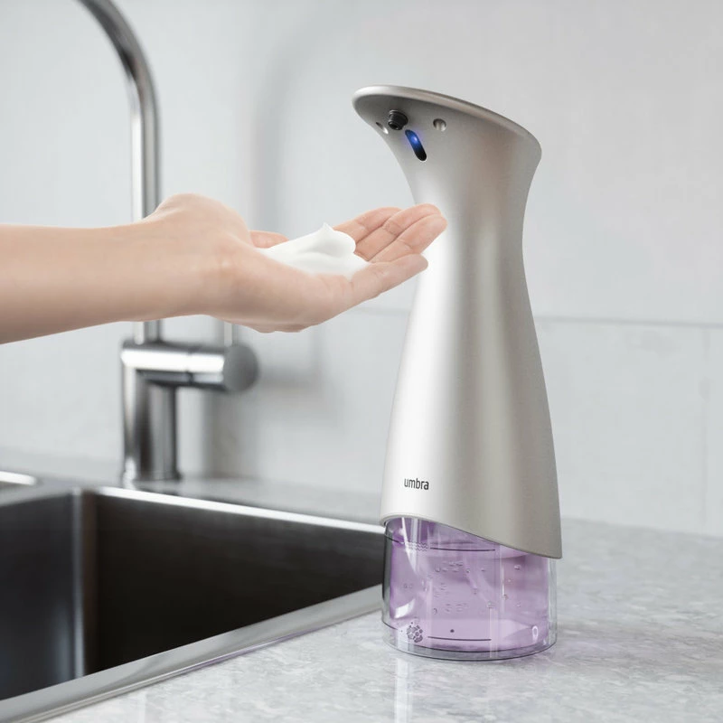 Our popular Umbra Otto Foaming Automatic Soap and Sanitizer Dispenser is now available for foaming soap. Otto’s touch-free technology minimizes the spread of germs while being eco-friendly, efficient, and easy to use. The clear base makes it easy to monitor soap levels, and it has a large opening that makes refilling easy and mess-free. Otto’s 9.5oz (280 ml) capacity can be filled with liquid hand soap by combining soap and water (1-part liquid soap with 5-parts water) to create foaming soap.