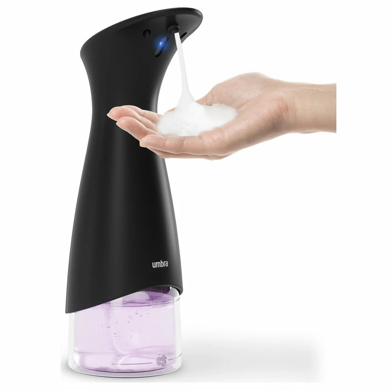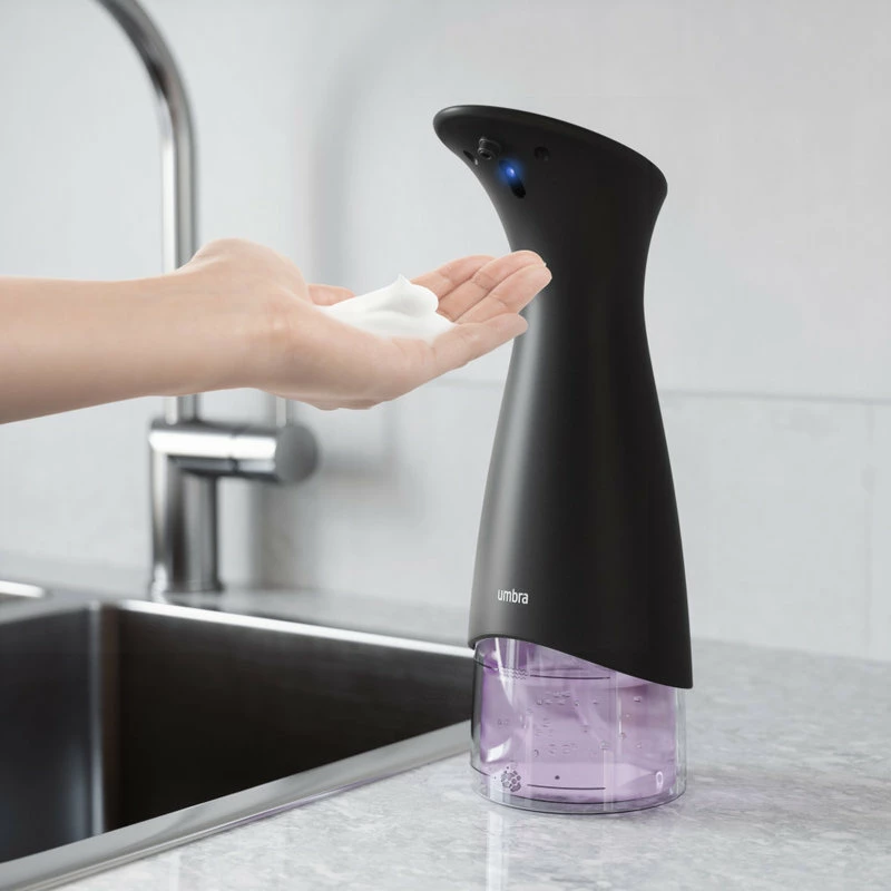 Our popular Umbra Otto Foaming Automatic Soap and Sanitizer Dispenser is now available for foaming soap. Otto’s touch-free technology minimizes the spread of germs while being eco-friendly, efficient, and easy to use. The clear base makes it easy to monitor soap levels, and it has a large opening that makes refilling easy and mess-free. Otto’s 9.5oz (280 ml) capacity can be filled with liquid hand soap by combining soap and water (1-part liquid soap with 5-parts water) to create foaming soap.