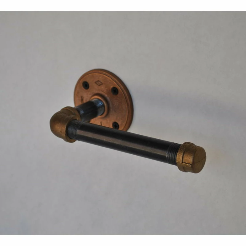 This Toilet Paper Holder is a the latest update in Urban Industrial decor. It is combining Brass and Steel Pipe for the ultimate in Industrial Chic materials. This isn’t standard black pipe fittings that have been painted brass. These are authentic high quality brass fittings mated with steel pipe pieces. Give your bathroom, kitchen. office, loft, home, commercial or retail space the newest Urban Industrial look.
