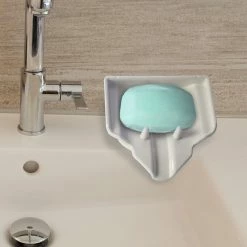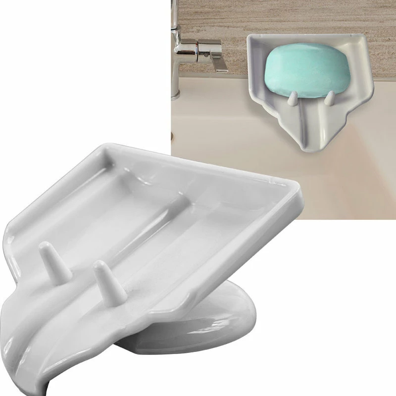This handy slanted soap dish drains excess water away from your soap and into your sink or shower, keeping soap dry and making it last longer. Built in plastic prongs hold soap in place.