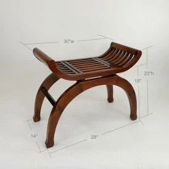 Spruce up your entry way with the addition of a stylish accent bench that can serve as a place to set down bags and other belongings as you enter the house or where you can quickly sit as you lace up your sneakers for the long day ahead. The beautifully carved structure of the Java Hard Wood Bench provides half moon appeal that will stand out in your tropical or contemporary space. This bench is expertly crafted from bass wood in a dark cherry stain and measures 30 inches wide, 14 inches deep and 21 inches tall.